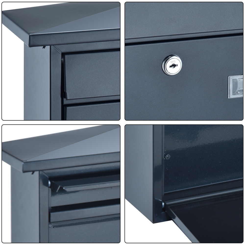 Sicherheitsfunktionen: Der Schutz Ihrer E -Mails und persönlichen Informationen ist von größter Bedeutung. Betrachten Sie Postfächer mit sicheren Verriegelungsmechanismen, um einen unbefugten Zugriff zu verhindern. Einige moderne Designs integrieren nahtlos Schlösser in den Gesamtlook und erhalten sowohl Stil als auch Sicherheit.