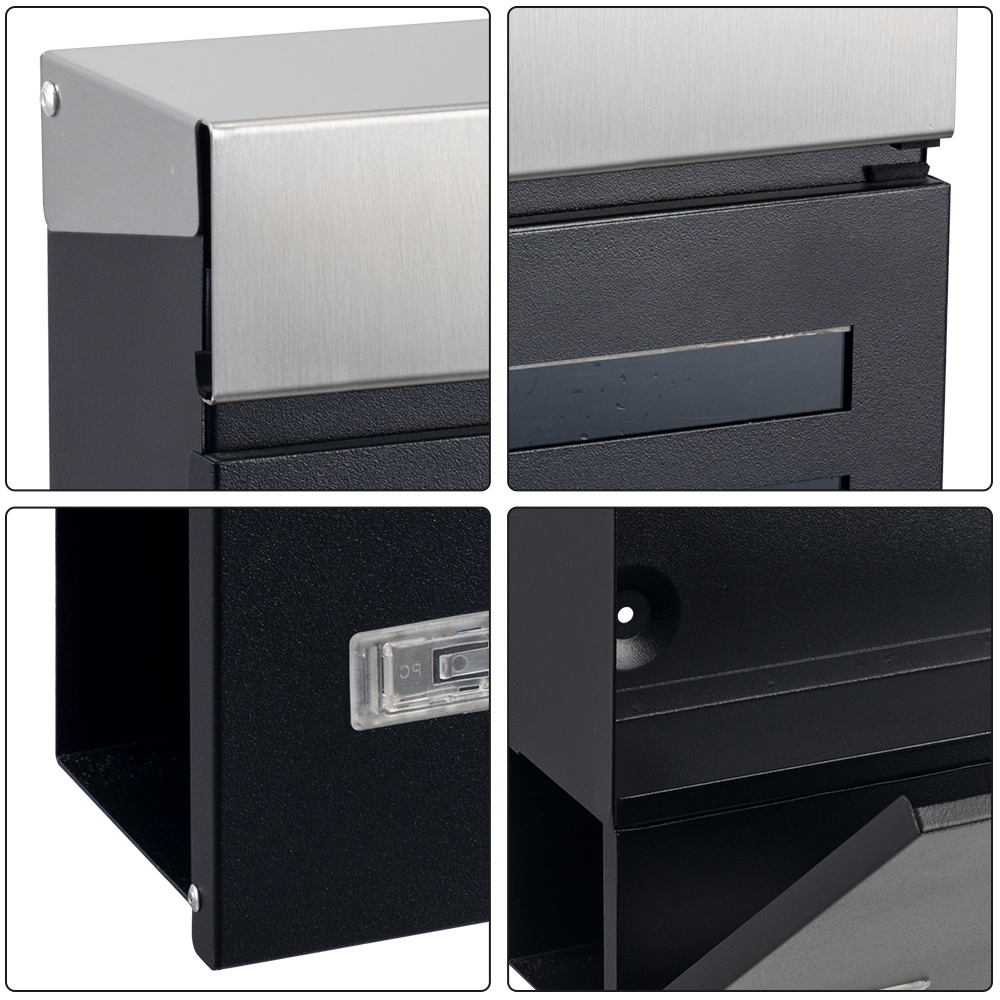 Sicherheitsfunktionen: Der Schutz Ihrer E -Mails und persönlichen Informationen ist von größter Bedeutung. Betrachten Sie Postfächer mit sicheren Verriegelungsmechanismen, um einen unbefugten Zugriff zu verhindern. Einige moderne Designs integrieren nahtlos Schlösser in den Gesamtlook und erhalten sowohl Stil als auch Sicherheit.