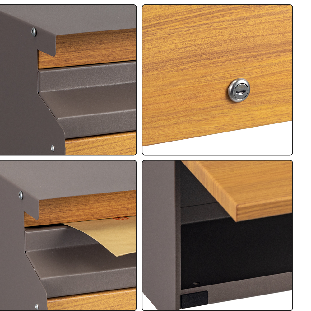 Sicherheitsfunktionen: Der Schutz Ihrer E -Mails und persönlichen Informationen ist von größter Bedeutung. Betrachten Sie Postfächer mit sicheren Verriegelungsmechanismen, um einen unbefugten Zugriff zu verhindern. Einige moderne Designs integrieren nahtlos Schlösser in den Gesamtlook und erhalten sowohl Stil als auch Sicherheit.